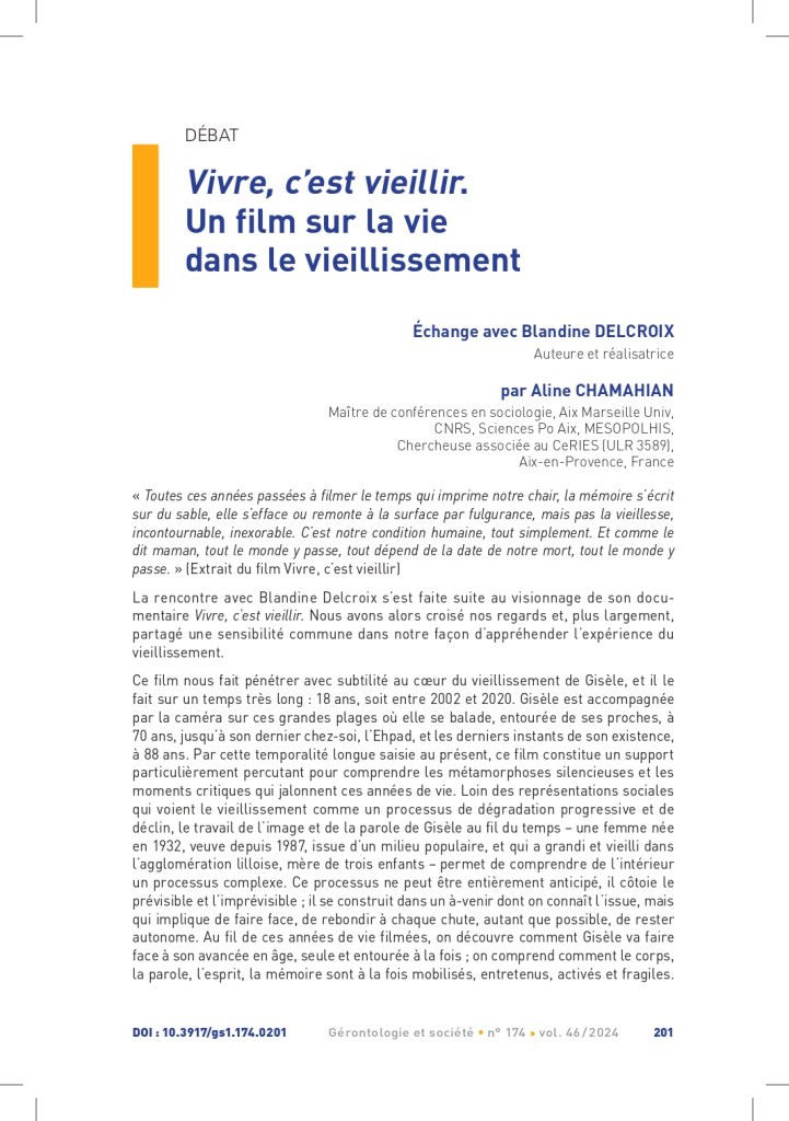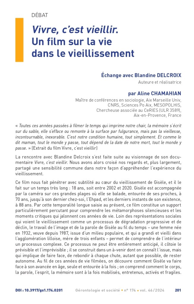 Aidée par la caméra pour regarder la réalité en face, je me suis alors plongée dans une aventure documentaire pour témoigner de la vieillesse de ma mère, et de la mienne en miroir.
